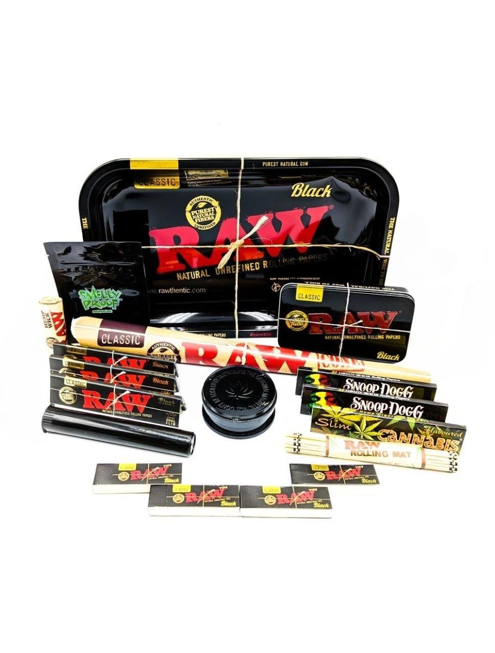 The RAW Tray Ultimate Set is a complete premium collection of rolling and storage essentials, designed for those who appreciate quality, style, and convenience. Featuring an exclusive all-black theme with carefully selected high-performance accessories, this all-in-one bundle delivers everything needed for a smooth, organized, and elevated rolling experience.