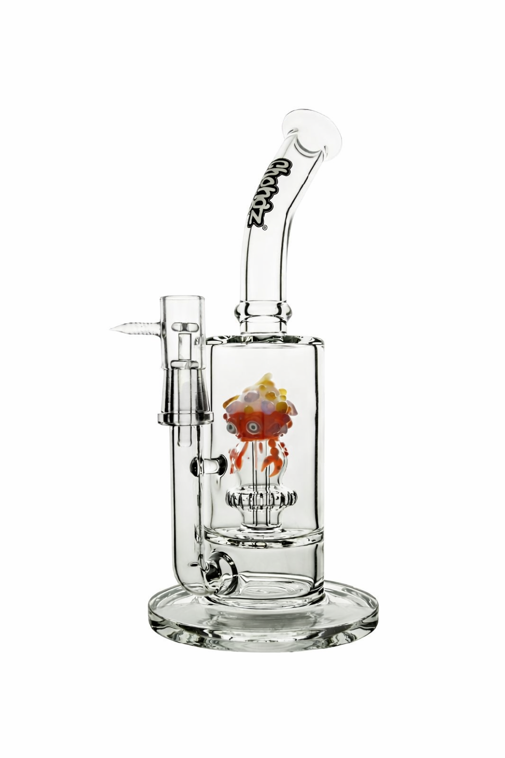 This stunning Chongz bong features a playful strawberry crab monster detail positioned above the percolator, adding personality and character to your setup. The creative design makes it: