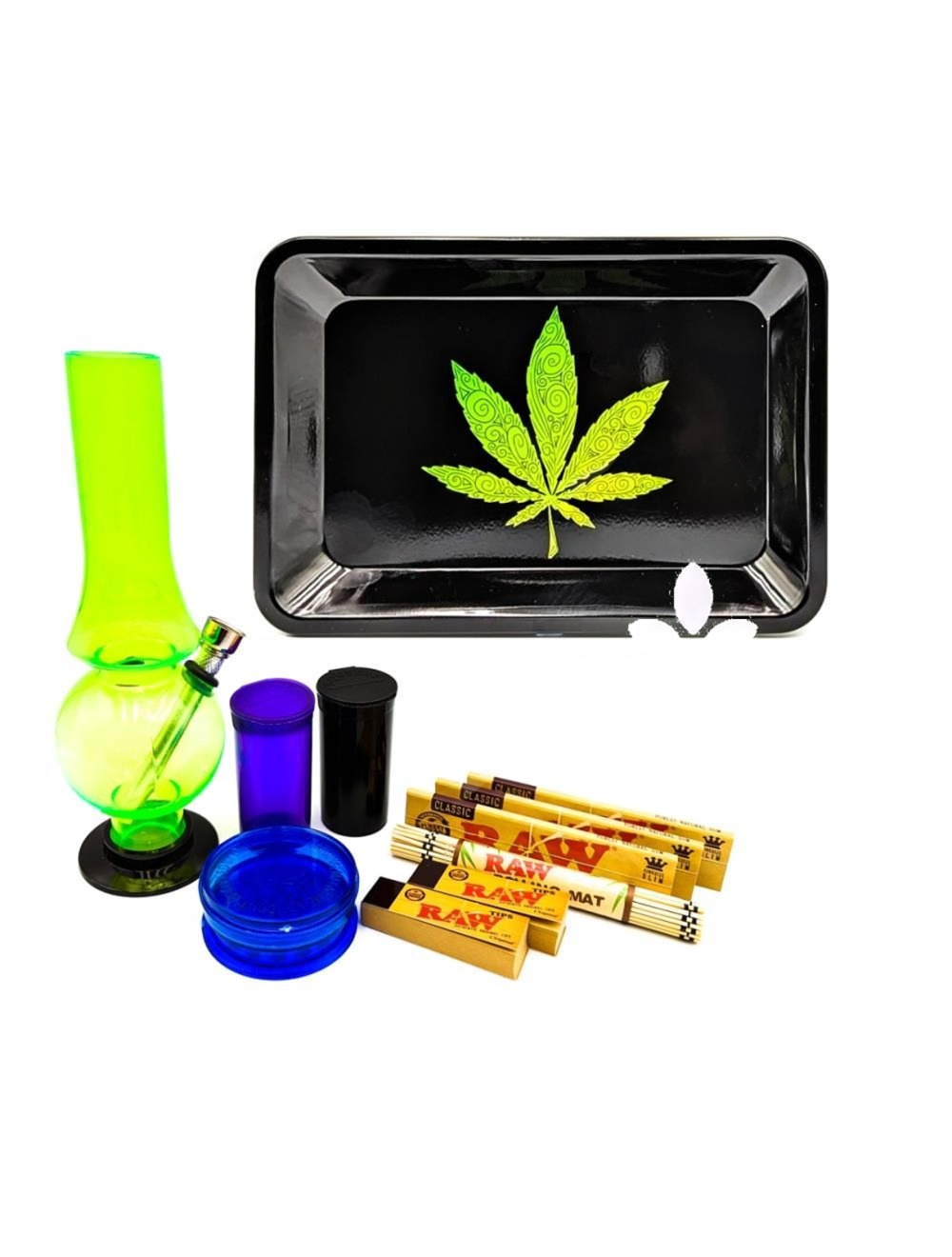 Featuring a trippy design rolling tray and a handy acrylic bong, this bundle blends functionality with standout visuals — making it a perfect choice for both beginners and experienced smokers.
