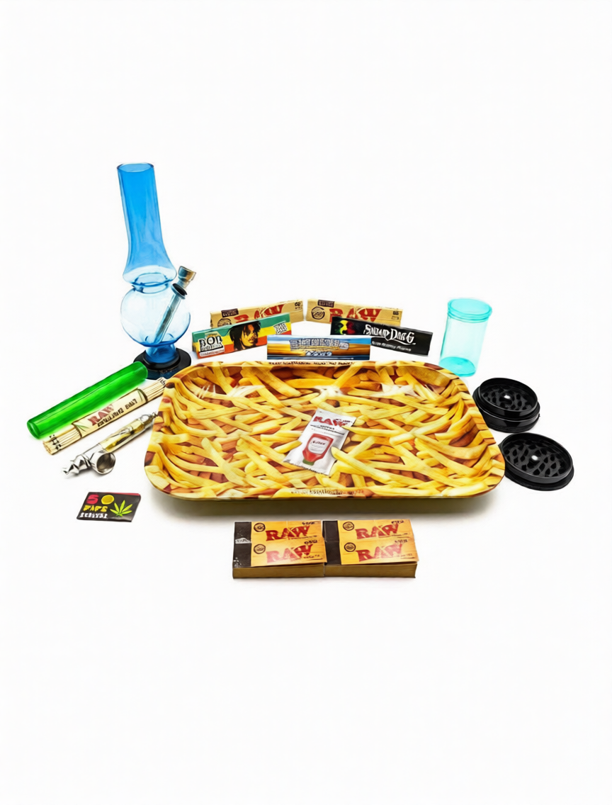 Live your best RAW life with this eye-catching Premium Smoking Bundle, featuring the printed RAW “French Fries” Medium Rolling Tray and a full collection of high-quality smoking essentials. Designed for convenience, organisation, and performance, this all-in-one kit is perfect for both beginners and experienced users.