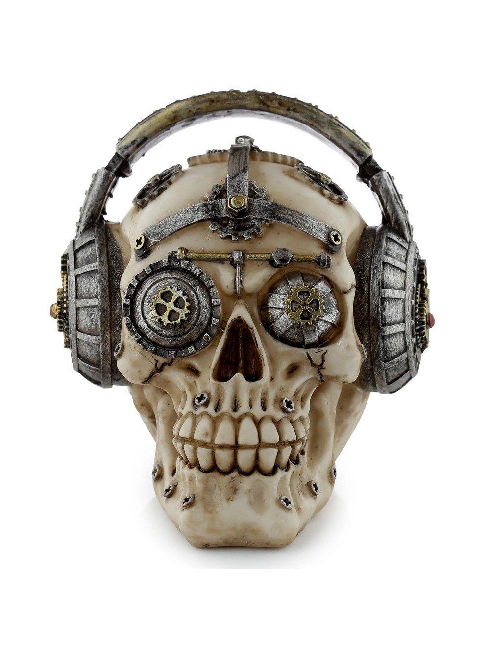 Steampunk Skull with Headphones Resin Ornament – 12.5cm Gothic Home Décor